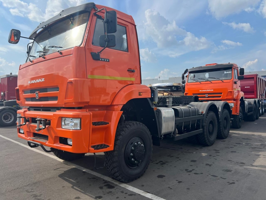 Колесная формула 6х6, двухскатная ошиновка, КПП 1820TO, г/п 22,175 тн., передаточное отношение 5,11, без спального места, автошины 12.00R20, монтажная длина 4780 мм, топливный бак 350 литров, МКБ, МОБ, дв. КАМАЗ-740.735-400 (E-5), ТНВД АЗПИ, система нейтрализ. ОГ, РК КАМАЗ-6522, выхлоп с обогревом платформы, аэродинам.козырек, боковая защита, тахограф российского стандарта с блоком СКЗИ, УВЭОС